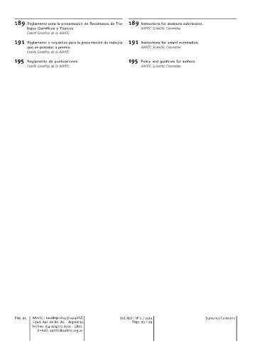 189 Reglamento para la presentación de Resúmenes de Tra- 189 Instructions for abstracts submission.