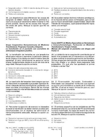 45. La transfusión de hematíes es una terapéutica 49. La inhibición de la coagulación contribuida por el
