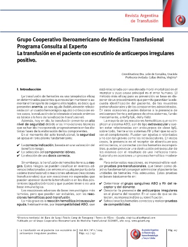 La transfusión en el paciente con escrutinio de Vol. XLV / N° 2 / 2019 Asociación Argentina Pág. 117