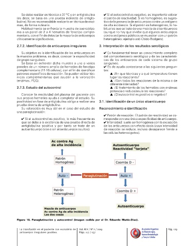 anticuerpos irregulares positivo. Págs. 117 / 137 de Hemoterapia,