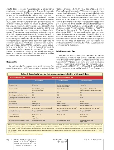 Tabla I. Características de los nuevos anicoagulantes orales Anti-Fxa.