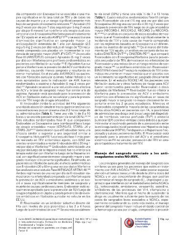 mg y 5 mg 2 veces por día) redujo el riesgo de TEV recu- cia en los eventos de sangrado. En el marco del trata-