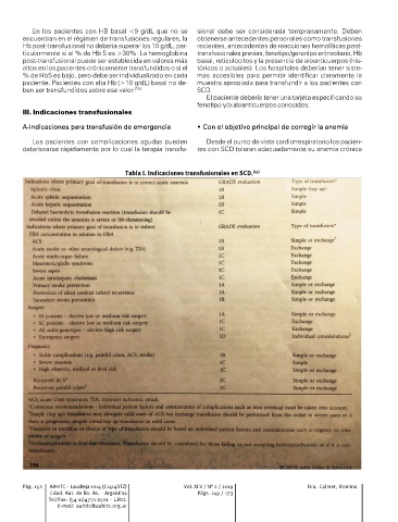 Tabla I. Indicaciones transfusionales en SCD. (19)