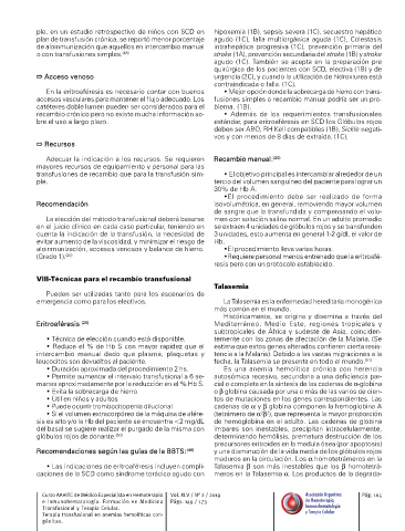 Recomendaciones según las guías de la BBTS: (49) y una disminución de la vida media de los glóbulos rojos