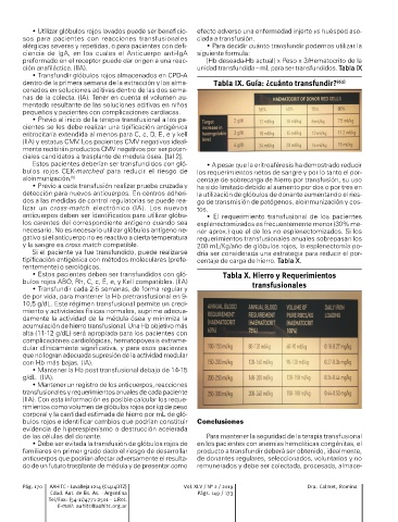 • Estos pacientes deben ser transfundidos con gló- Tabla X. Hierro y Requerimientos