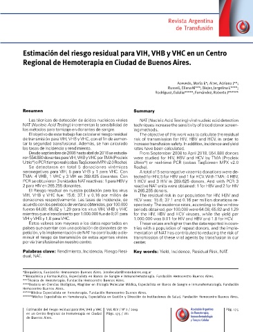 Estimación del riesgo residual para VIH, VHB y VHC Vol. XLV / N° 2 / 2019 Asociación Argentina Pág. 175