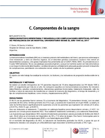 C. Componentes de la sangre Vol. XLV / N° 3 / 2019 Asociación Argentina Pág. 235