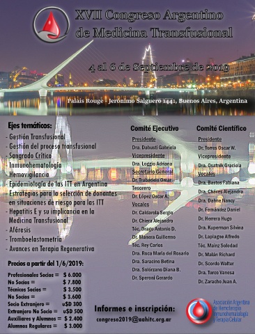 Auxiliares y Alumnos = $ 2.400 congreso2019@aahitc.org.ar