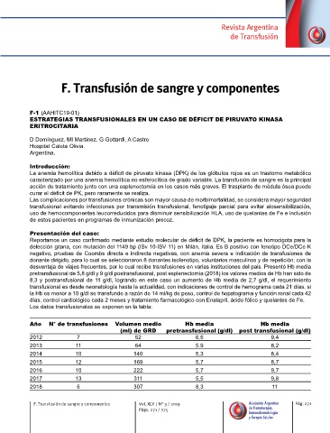 F. Transfusión de sangre y componentes Vol. XLV / N° 3 / 2019 Asociación Argentina Pág. 271