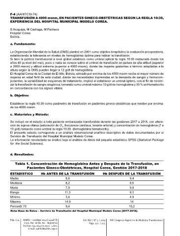 Pág. 274 AAHITC - Lavalleja 1214 (C1414DTZ) Vol. XLV / N° 3 / 2019 XVII Congreso Argentino de Medicina Transfusional