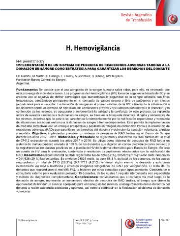 H. Hemovigilancia Vol. XLV / N° 3 / 2019 Asociación Argentina Pág. 287