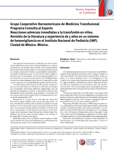 Resumen Palabras clave: Reacciones asociadas transfusión -