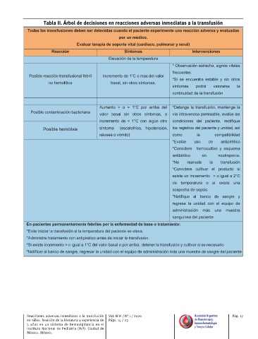 Reacciones adversas inmediatas a la transfusión Vol. XLVI / N° 1 / 2020 Asociación Argentina Pág. 17