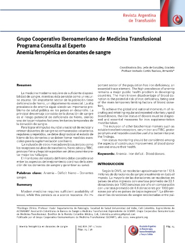 Anemia ferropénica en donantes de sangre Vol. XLVI / N° 1 / 2020 Asociación Argentina Pág. 25