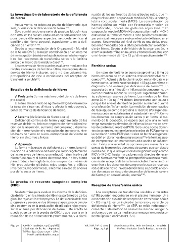 de las reservas de hierro, una reducción significativa del MCV y MCHC, hasta marcadores más directos de reser-