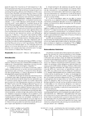 Keywords: Blood system - Mexico - Hemovigilance. Un ejemplo notable de la hemovigilancia es Japón, (10)