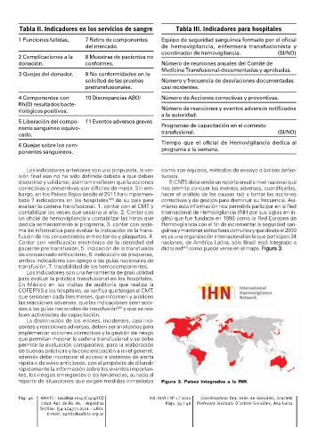 Tabla II. Indicadores en los servicios de sangre Tabla III. Indicadores para hospitales