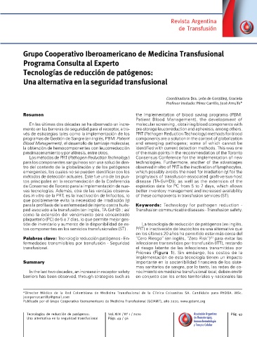 vés de estrategias tales como la implementación de los PRT (Pathogen Reduction Technology) methods for blood
