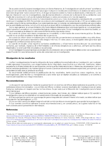 estándares éticos mencionados. Los comités científicos no deben aceptar resultados de investigaciones en seres
