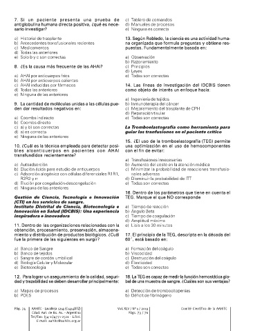 b) Antecedentes transfusionales recientes na organizada que formula preguntas y obtiene res-