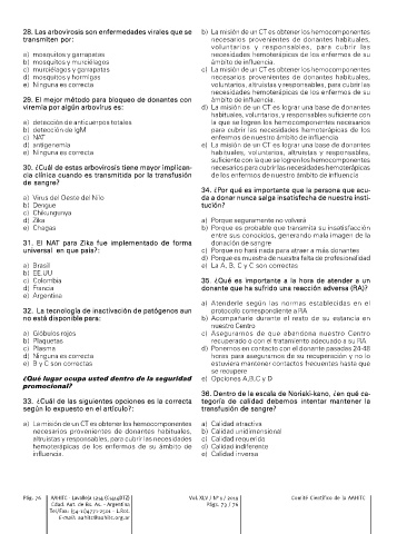 28. Las arbovirosis son enfermedades virales que se b) La misión de un CT es obtener los hemocomponentes
